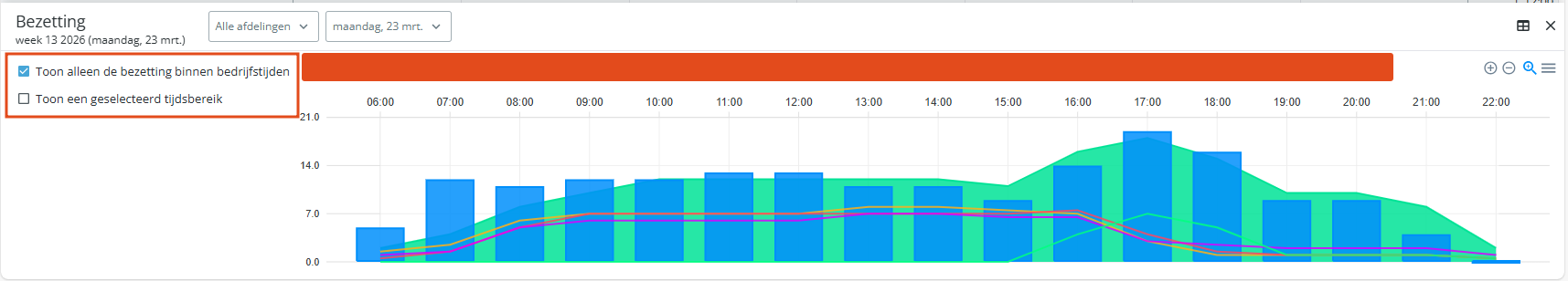 - Toon alleen de bezetting binnen bedrijfstijden: Zorgt ervoor dat je alleen bezettingsinformatie binnen jouw ingestelde bedrijfstijden ziet